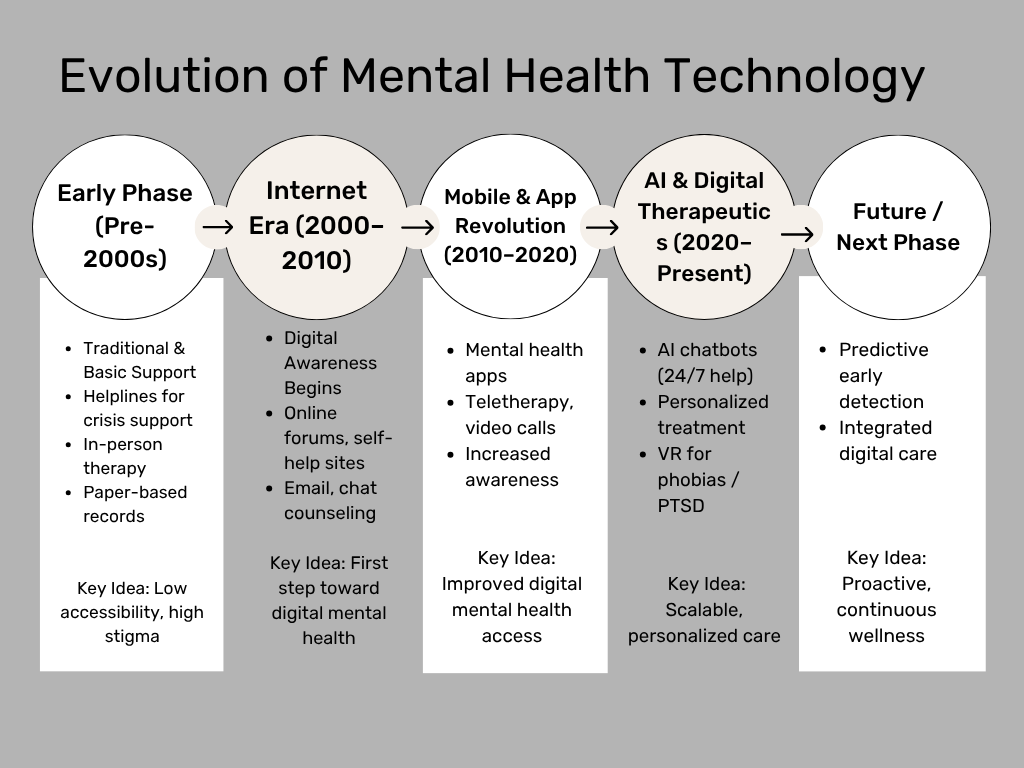 The current mental health ecosystem in India is fragmented across therapy platforms, wellness apps, and enterprise solutions, with limited integration of AI-driven clinical infrastructure. Integrating AI into the mental health platforms will transform the mental health ecosystem.