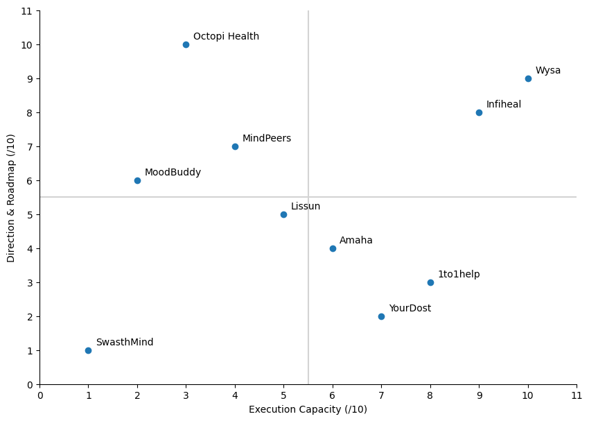 S No.Ranking (Highest → Lowest) Score (Direction & Roadmap) Score (Execution Capacity)