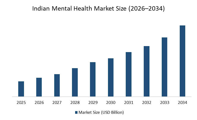 The Indian mental health market size was valued at USD 20.82 billion in 2025 and is projected to reach USD 27.36 billion by 2034, growing at a compound annual growth rate of 3.08% from 2026 to 2034.