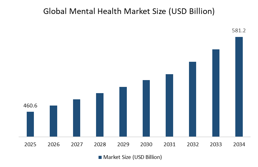 The global mental health market size reached USD 460.6 billion in 2025. Looking forward, IMARC Group expects the market to reach USD 581.2 billion by 2034, exhibiting a growth rate (CAGR) of 2.62% during 2026-2034.